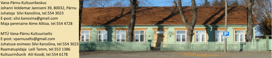 • 23. detsember kl. 14 advendikontsert, esinevad Vana-Pärnu kultuuriseltsi lauljad, pillimängijad, sõnaseadjad.